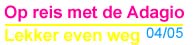 Hilda, Bas, Lisanne en Sem hebben hun werk en crèche opgezegd voor een jaartje lekker even weg met de Adagio, een Contest 46. Het plan: in juni 2004 richting zuiden, Canarische eilanden, naar de Carieb en vanaf mei 2005 via Bermuda en Azoren in een paar maanden weer terug naar Nederland. De trajecten zijn beschreven in het Logboek. Verder voor de liefhebbers in de Mini Club foto's van prinses Lisanne en bootboefje Sem. ![]()