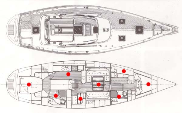 Wat een heerlijke boot is de Adagio. Klik op het dek om de buitenkant of op de rode stippen om de binnenkant te bekijken. De boot is niet van ons hoor! Wij hebben haar geleend van Sidney en Xandra Moll die 3 jaar geleden een rondje Atlantic hebben gevaren (zie www.moll.nl). Tot nu toe zijn we erg blij met deze deal. Veel dank aan de Monteur Eigenaar/Helpdesk!
